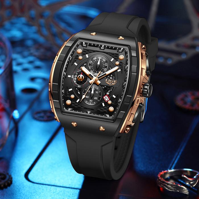 LIGE Fashion Chronograph Jam Tangan Pria Tali Silikon Dial Multifungsi Tahan Air Bercahaya Jam