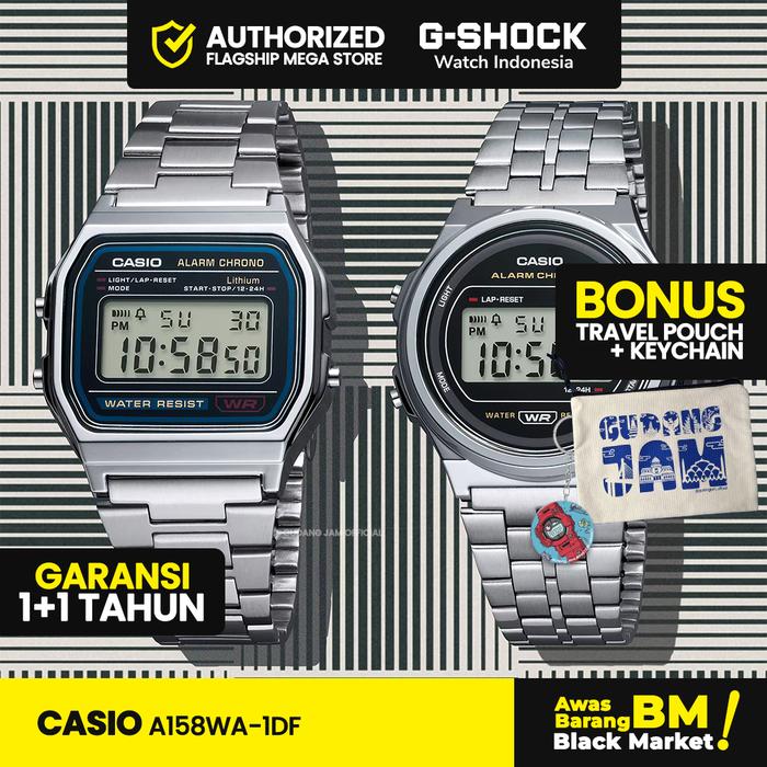 Casio General A158WA-1DF Jam Tangan Pria Aesthetic Vintage Digital Anti Air Original Casio Watches