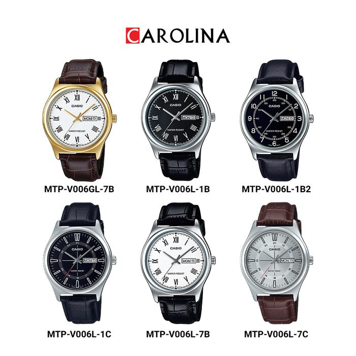 Jam Tangan Pria Casio MTP-V006L-7B Analog White Dial Black Leather Strap Watches