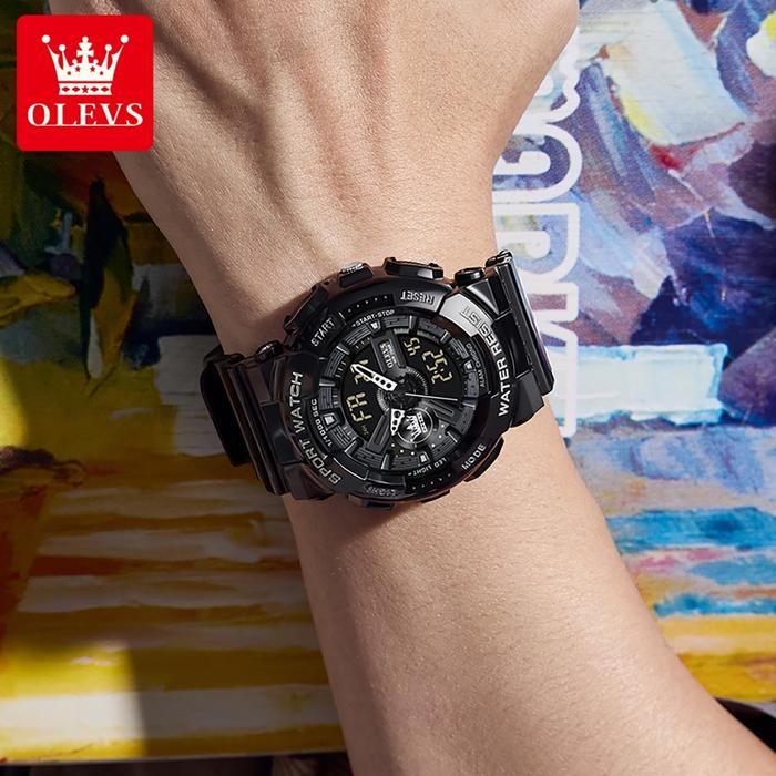 OLEVS Jam Tangan Pria Cowok Sport Watch Original Anti Air Tahan Multifungsi LED Alarm Men Watches