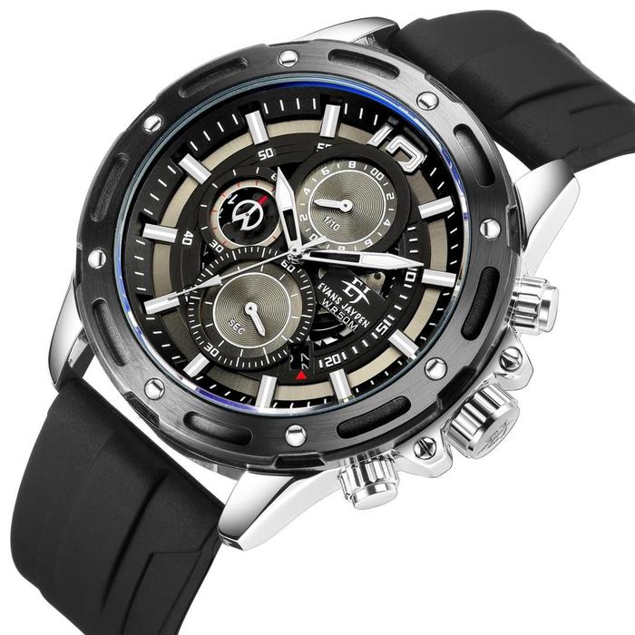 Evans Jayden Jam Tangan Pria 9494 Rubber Kaca Sapphire Chronograph Water Resistant 5ATM Watches