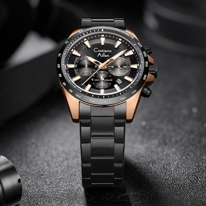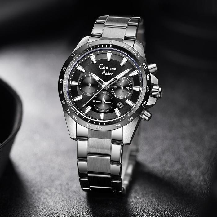 Cristiano Aillen JamTangan Pria Analog 8891 Rantai Stainless Steel Chronograph Kaca Sapphire Water
