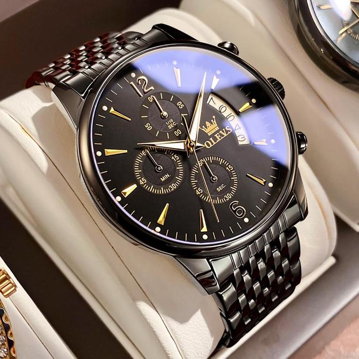 OLEVS Jam Tangan Pria Anti Air Original Rantai Keren Mewah Luxury Stainless Steel Watch Men Jam