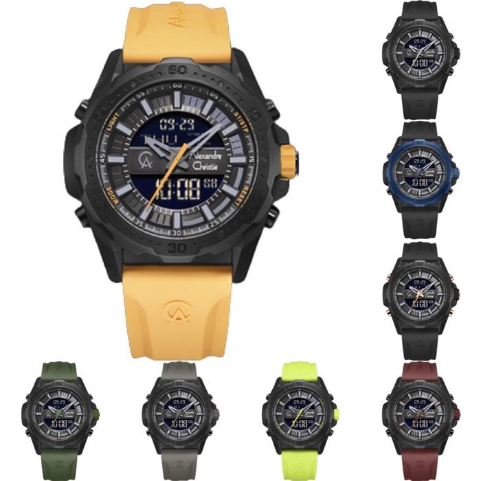 JAM TANGAN PRIA ALEXANDRE CHRISTIE AC 9370 / AC9370 RUBBER DUAL TIME ORIGINAL GARANSI RESMI 1 TAHUN