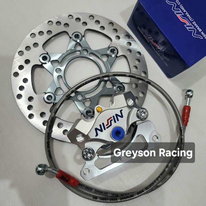 Paket kaliper NS 2 piston plus breket dan piringan 220mm kaliper vario beat scoopy mio fino mio soul - honda kaliper red