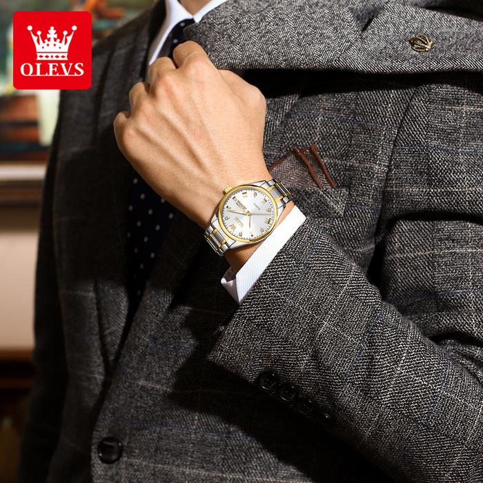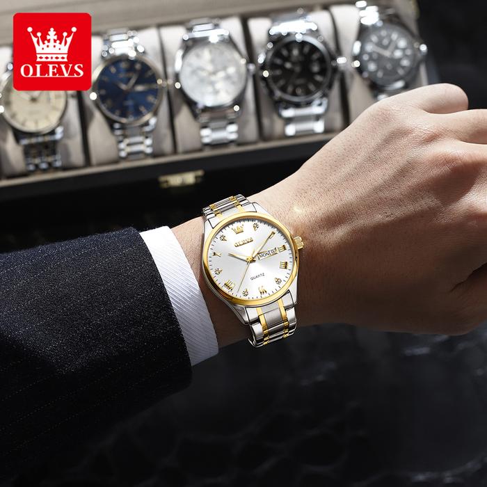 OLEVS Jam Tangan Pria Anti Air Original Cowok Stainless Steel Tahan Karat Cowok Bergaya Analog