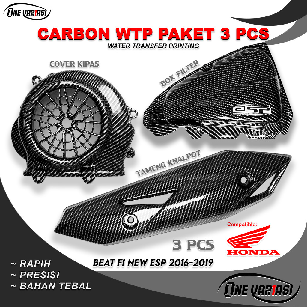 BLACK CARBON PAKET CARBON BEAT FI NEW ESP 3PCS TAMENG KENALPOT + COVER KIPAS + BOX FILTER BEAT FI POP STREET ESP 2016/20