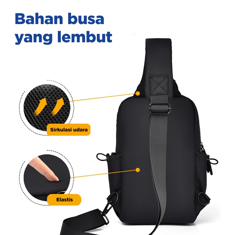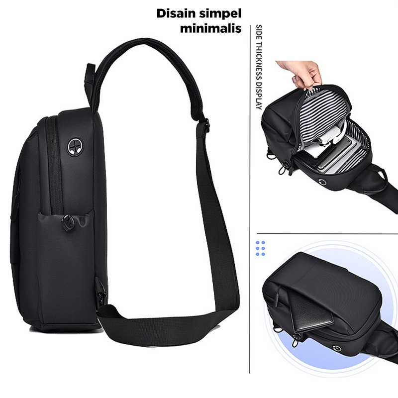 Freeknight Tas Selempang Pria Multifungsi Earphone Hole Sling Bag Cowok Casual Pu Leather Ts614