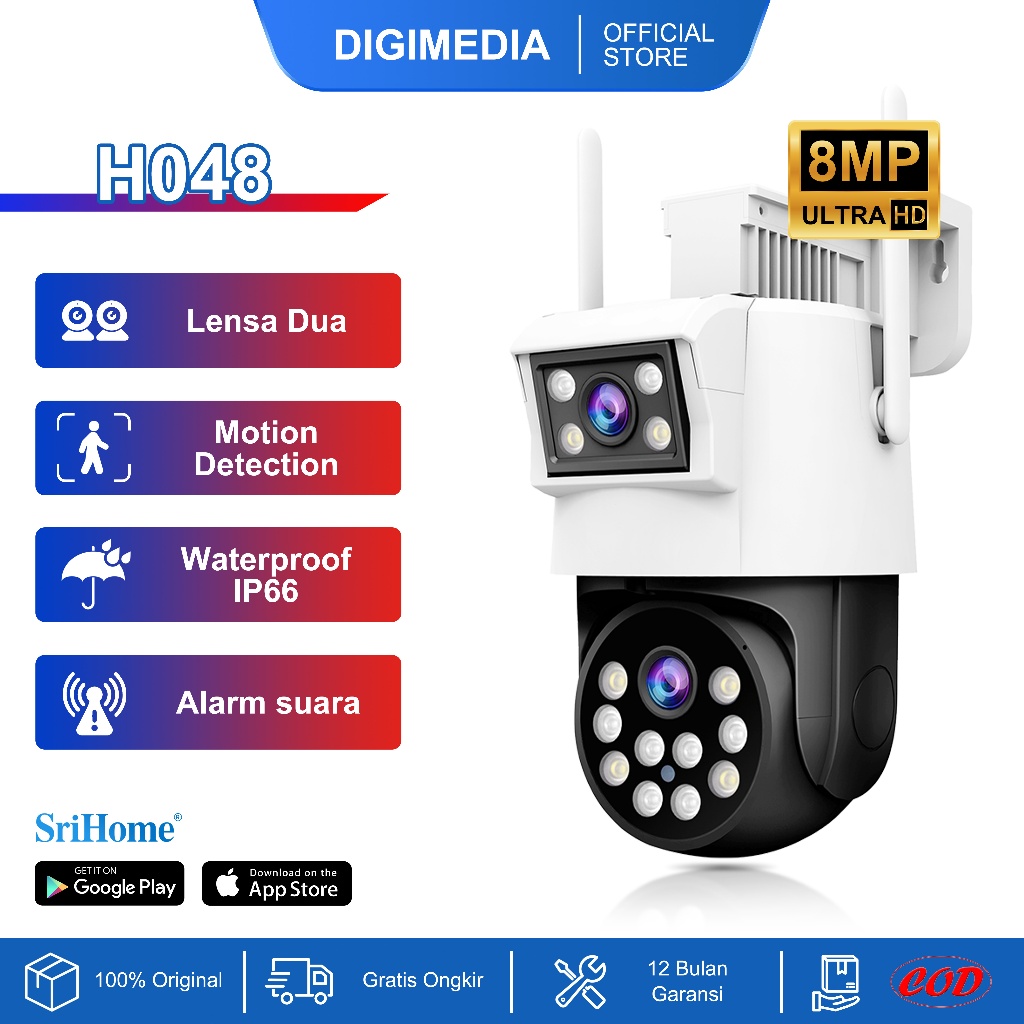 Digimedia H048 8Mp Cctv Wifi Outdoor Waterproof Kamera Hp Jarak Jauh 【Anti-Pencurian】Tampilan Panorama 360° + Pelacakan