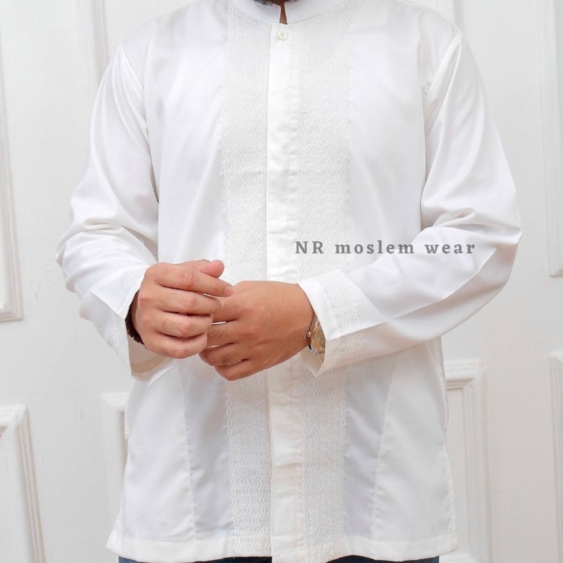 BAJU KOKO PUTIH PREMIUM , BAJU KOKO PUTIH LENGAN PANJANG PERLENGKAPAN HAJI UMROH ARK-16