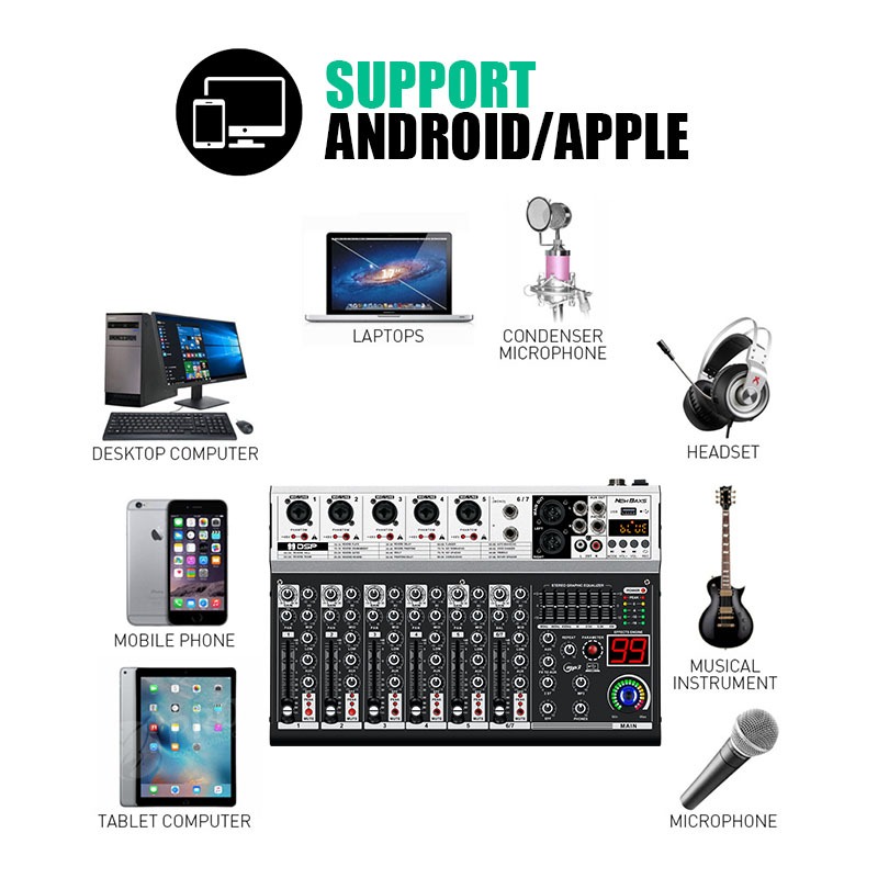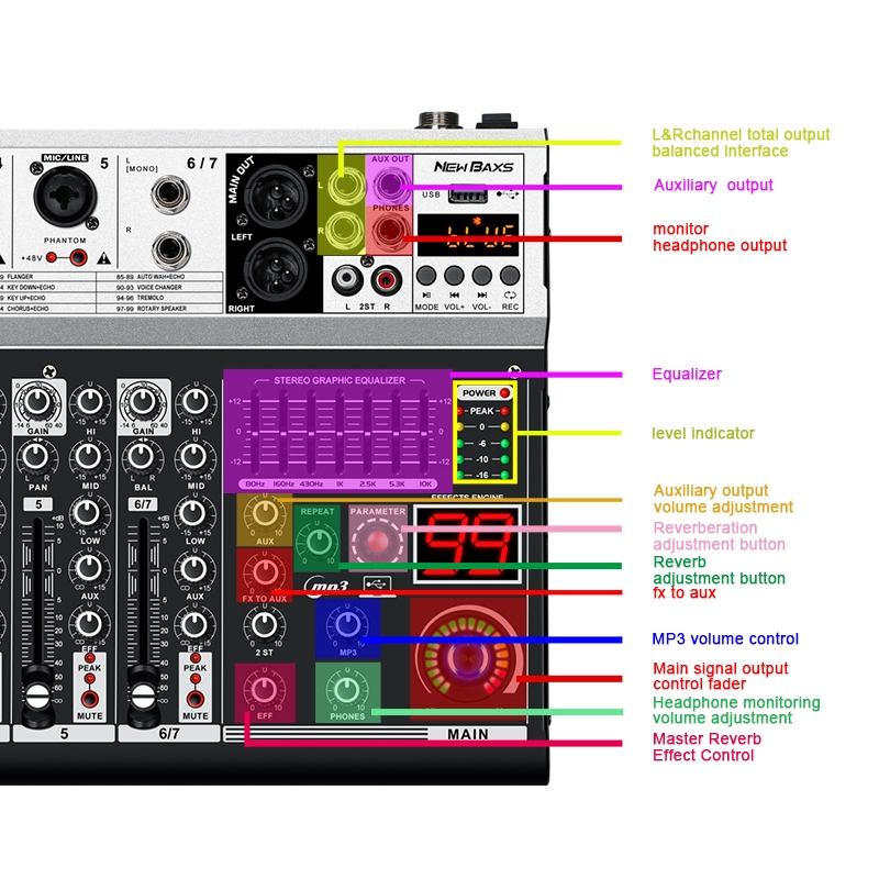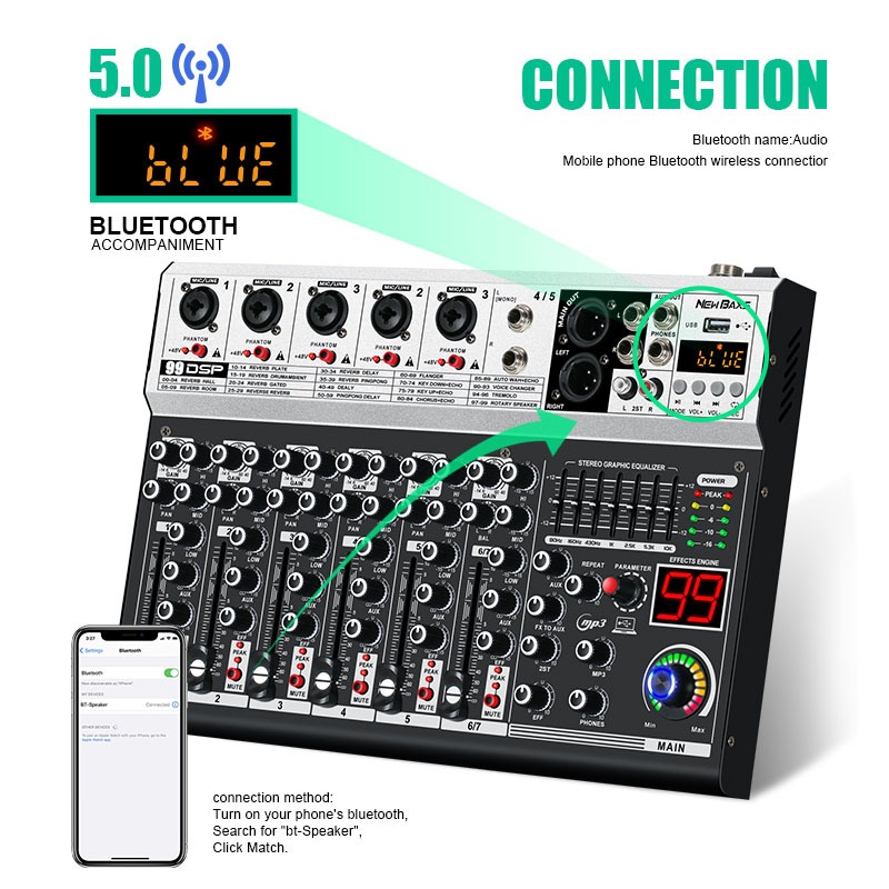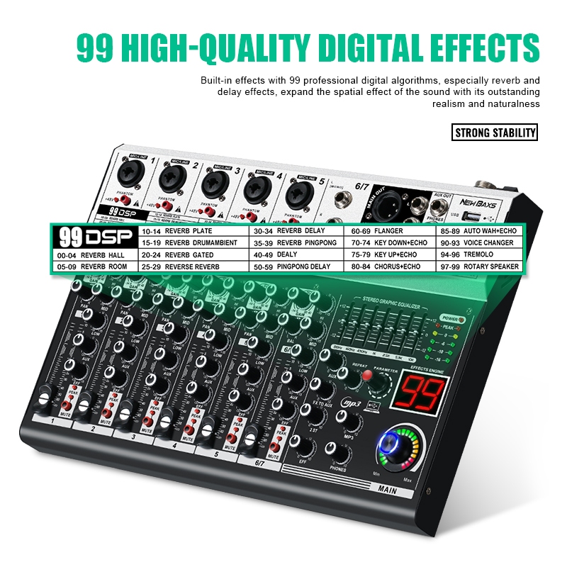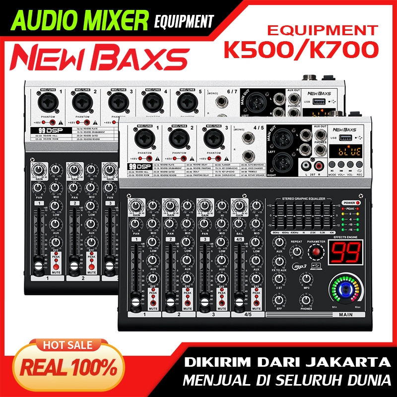NEW BAXS Mixer K500/K700 Mixer audio profesional 5/7-arah mixer audio 99DSP built-in efek reverb 7-band mendukung efek pemerataan USB/MP3/Bluetooth Bodi logam
