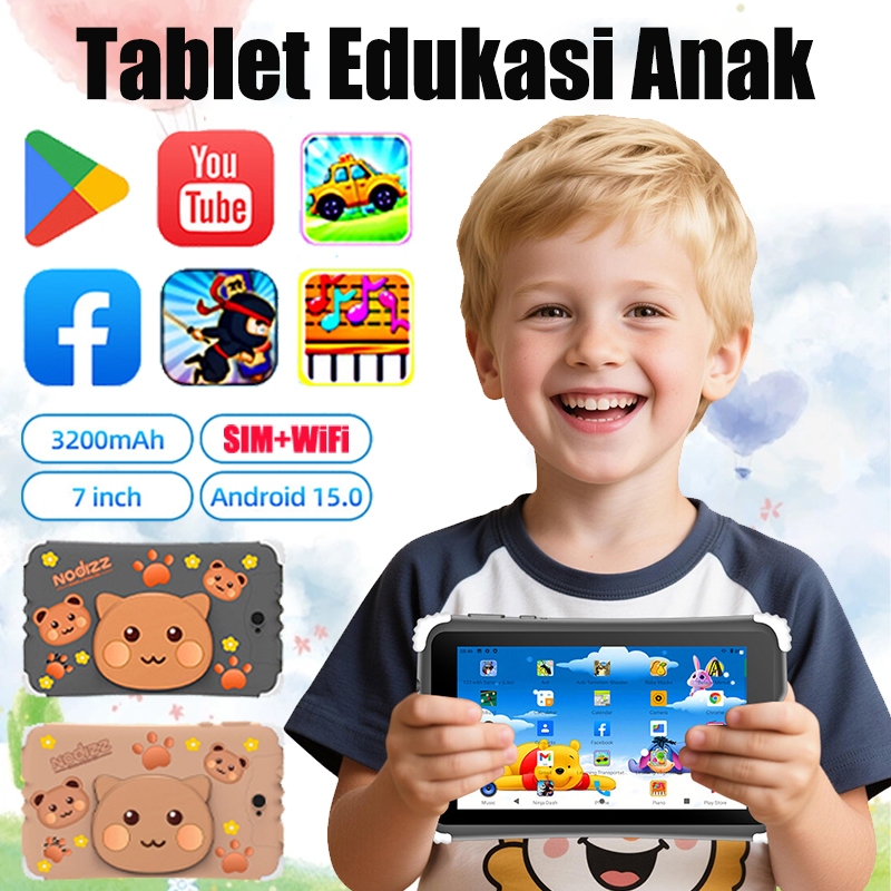 Tablet Pendidikan Anak Android 15.0 Wifi 5G Dual Sim Dual Standby 7Inchi Ips Screen Antiradiasi Aman Npad732 Kids Tablet