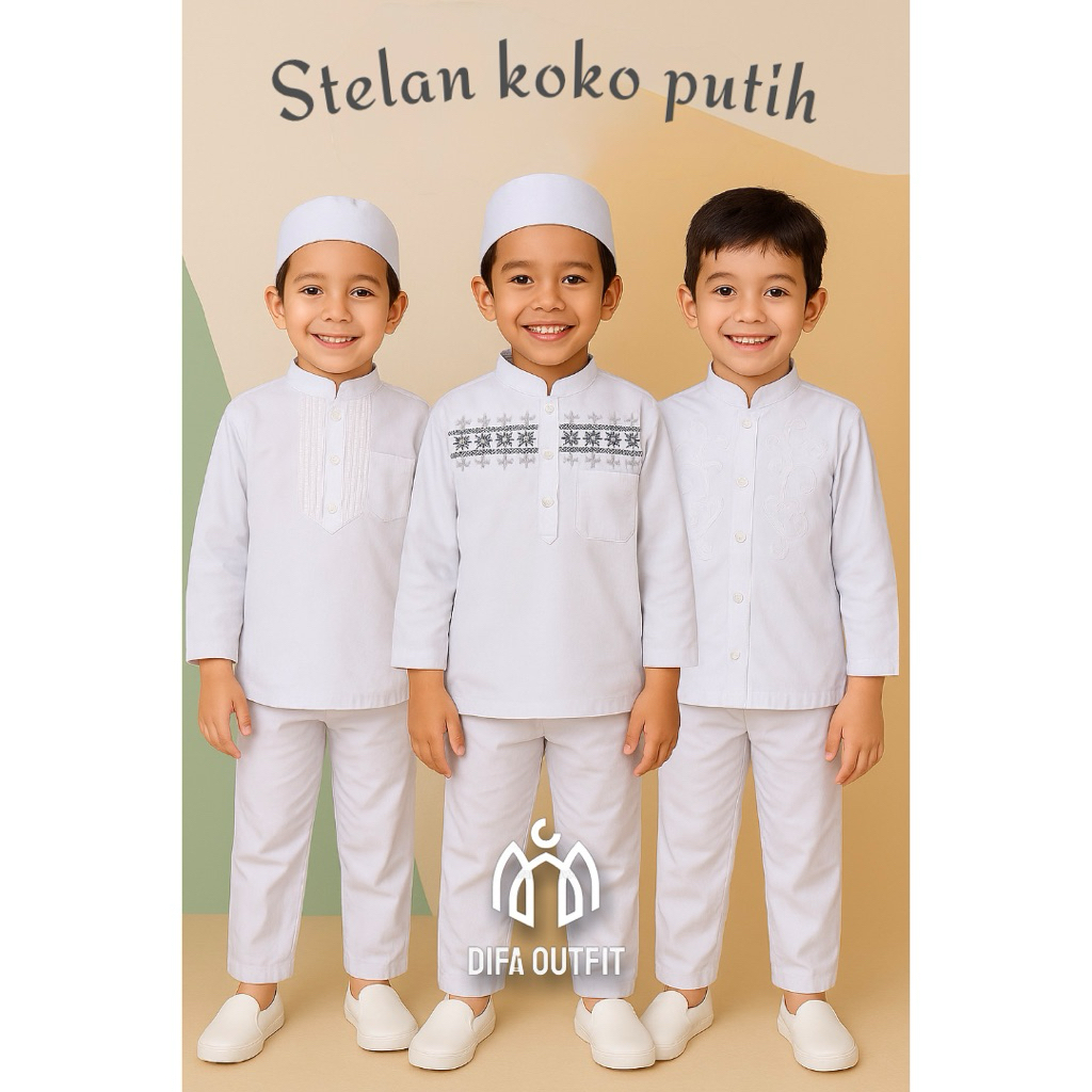 stelan baju koko putih anak laki laki dengan bordir