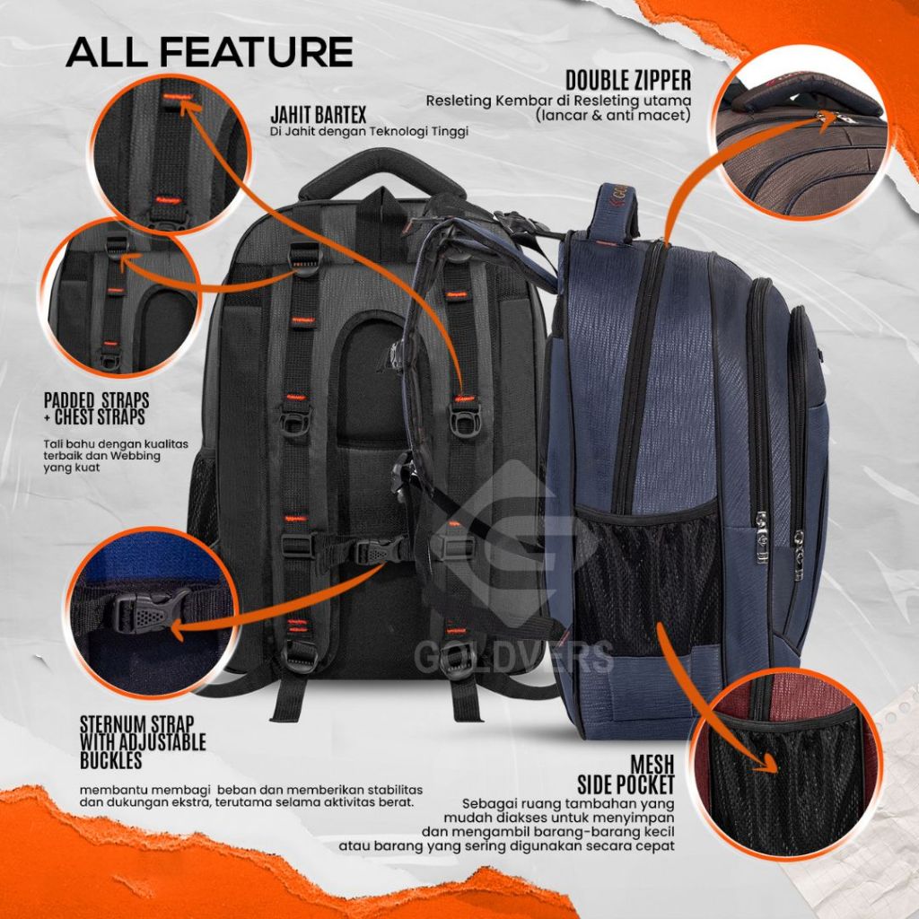 Goldvers - Cosy Tas Ransel Sekolah Model Polo Goldvers Kuliah Bahan Polyester Nilon Fashion Pria Distro Official Brand