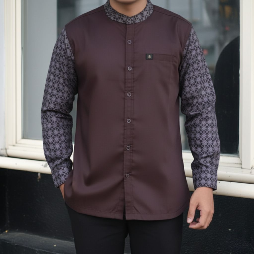 Kemeja Sumando/Kemeja Batik Pria Lengan Panjang Motif Emboss/Kemko Bahan Katun Toyobo Premium