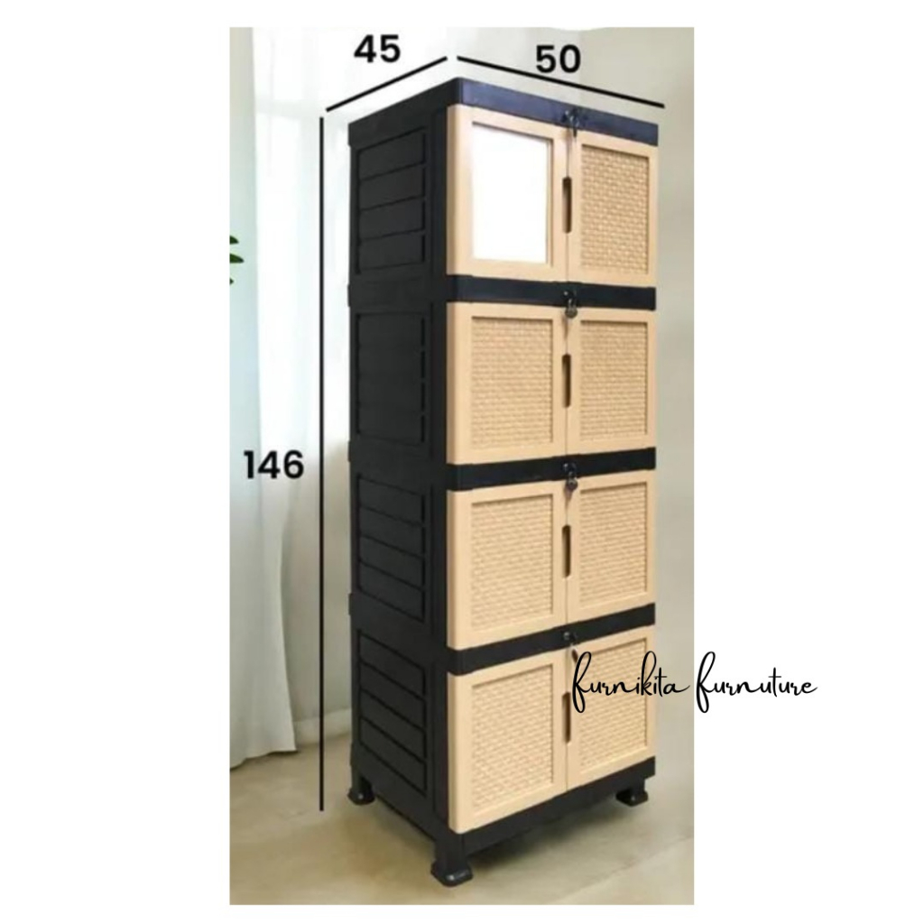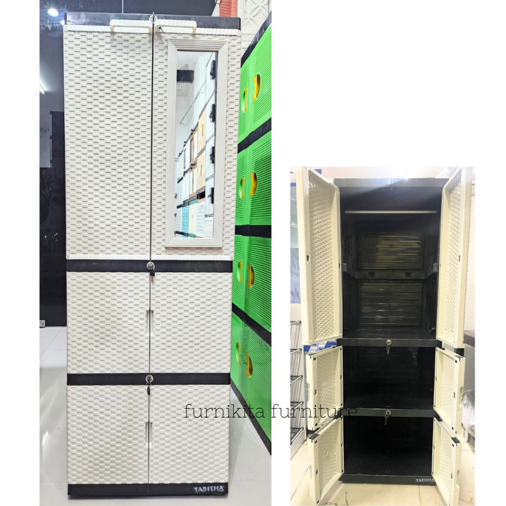 LEMARI PAKAIAN PLASTIK GANTUNG KACA CERMN KUNCI ROTAN TABITHA
