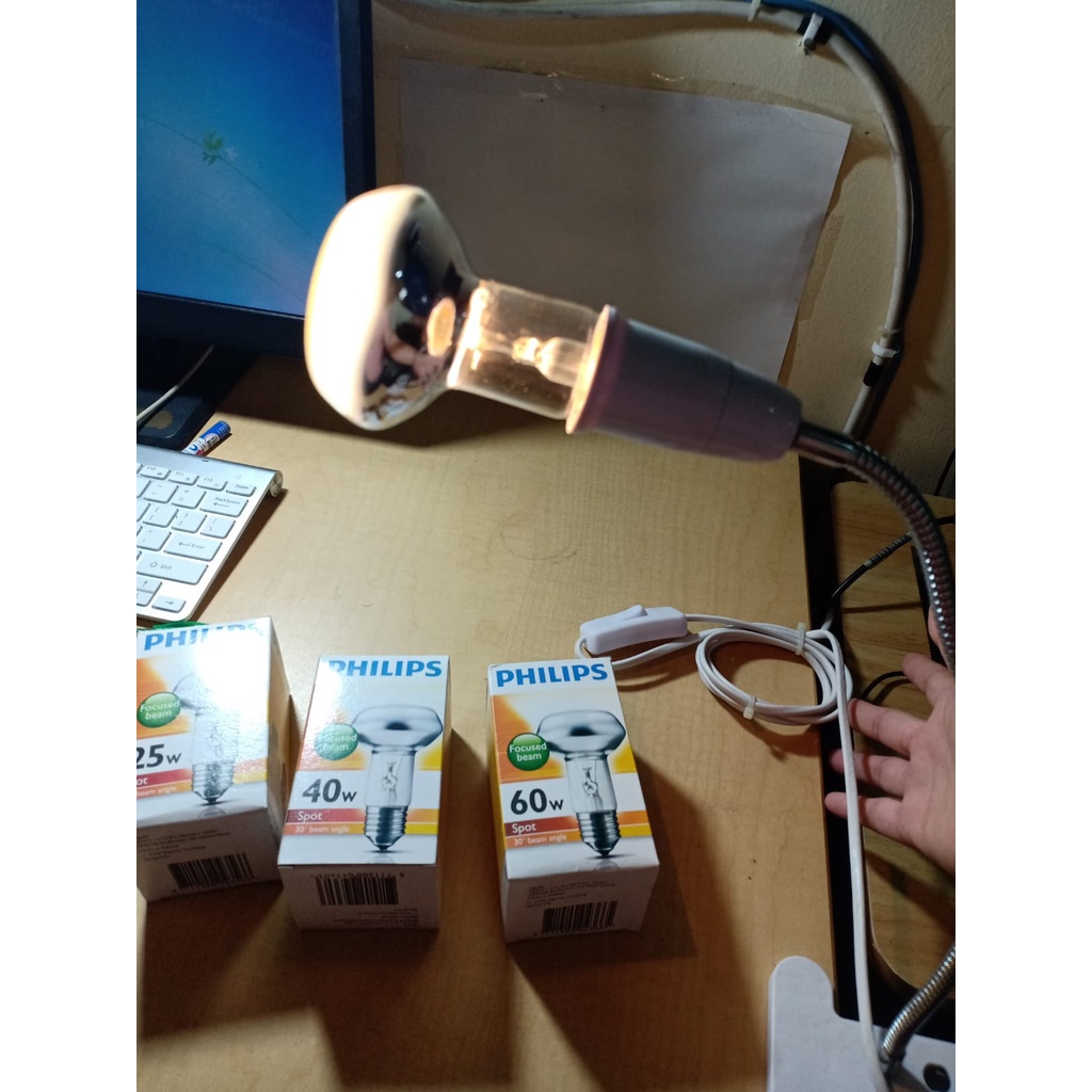 PHILIPS SPOT 60 WATT LAMPU PENGHANGAT + FITTING JEPIT DAN KABEL 1.8 M / PAKET FITTING JEPIT + LAMPU PENGHANGAT 60 W/40 W