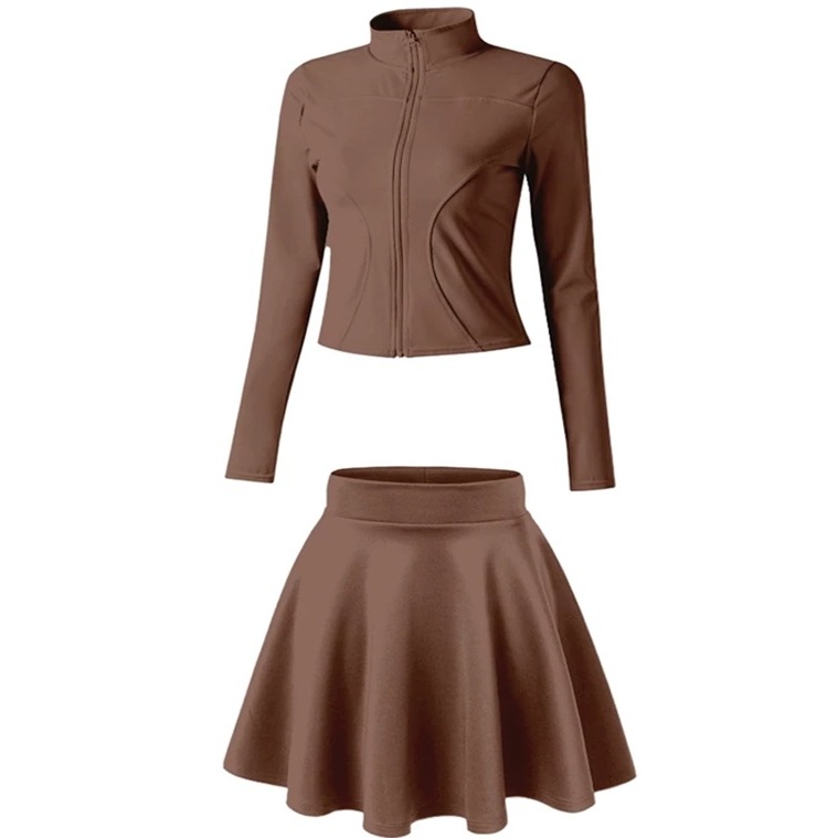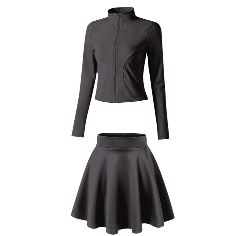 VELLORASTYLE-Setelan Olahraga Wanita Jaket Bodyfit Dan Rok Sport Bahan Adem Quick Dry Nyaman