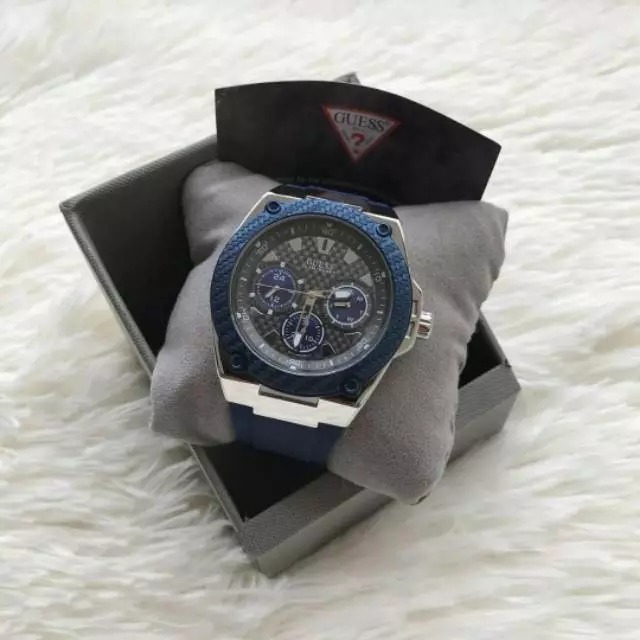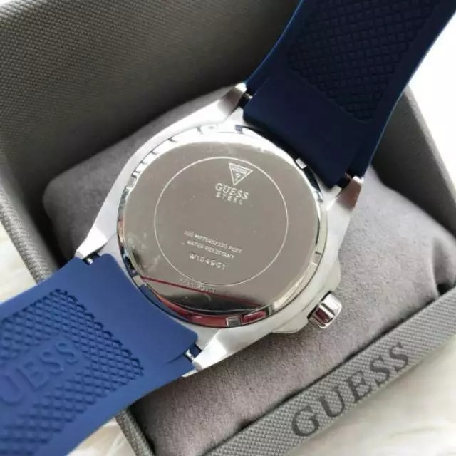 JAM TANGAN PRIA GUESS W1049G1 SILVER BLUE RUBBER FREE ONGKIR - FREE BOX