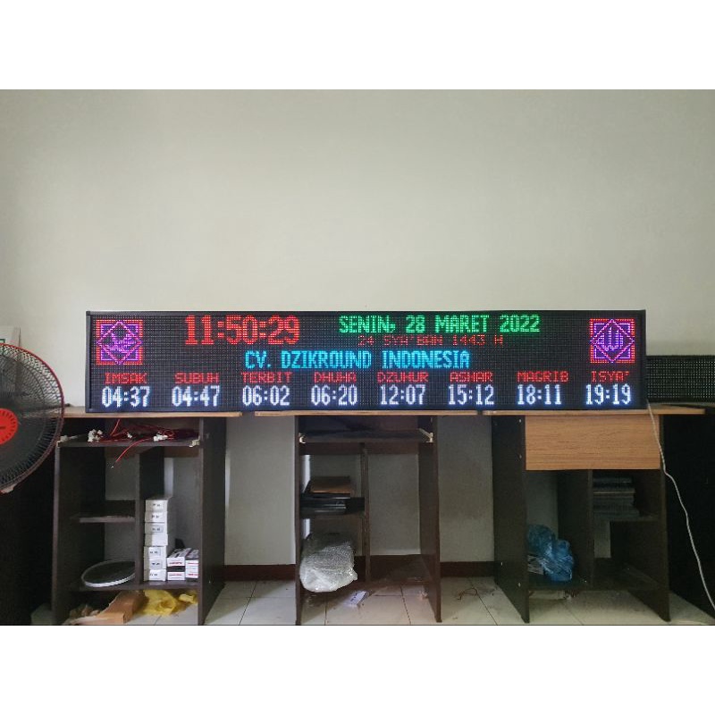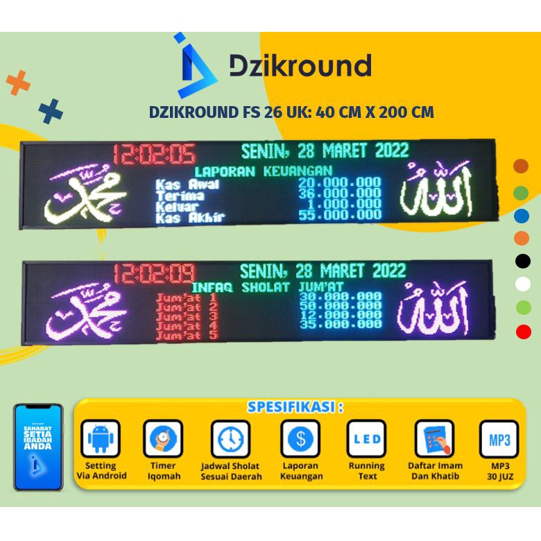 DZIKROUND FS26 Jam Digital masjid Jadwal Sholat timer iqomah fullcolour 40cmx200cm