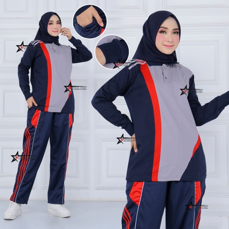 Setelan Baju Olahraga Senam Harian Wanita Lengan Panjang / Stelan Kaos trening Olahraga Wanita