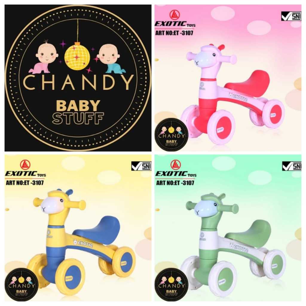 SEPEDA ANAK KESEIMBANGAN EXOTIC ET 2003 MODEL DOMBA, 3107 MODEL DOMBA, 3108, & 3109 MODEL DINO/ ET 2152 (MUSIK DAN LAMPU)
