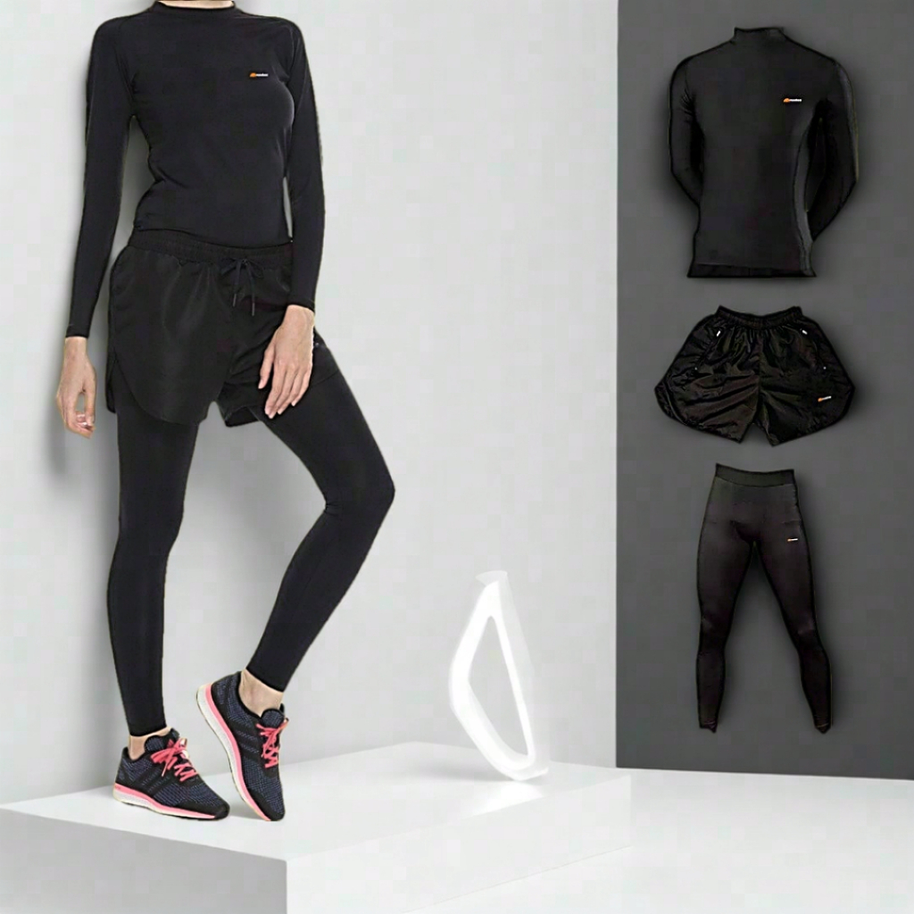 Setelan Olahraga Jersey manset Celana Pendek Legging Pria Wanita Gym Jogging Lari Sport