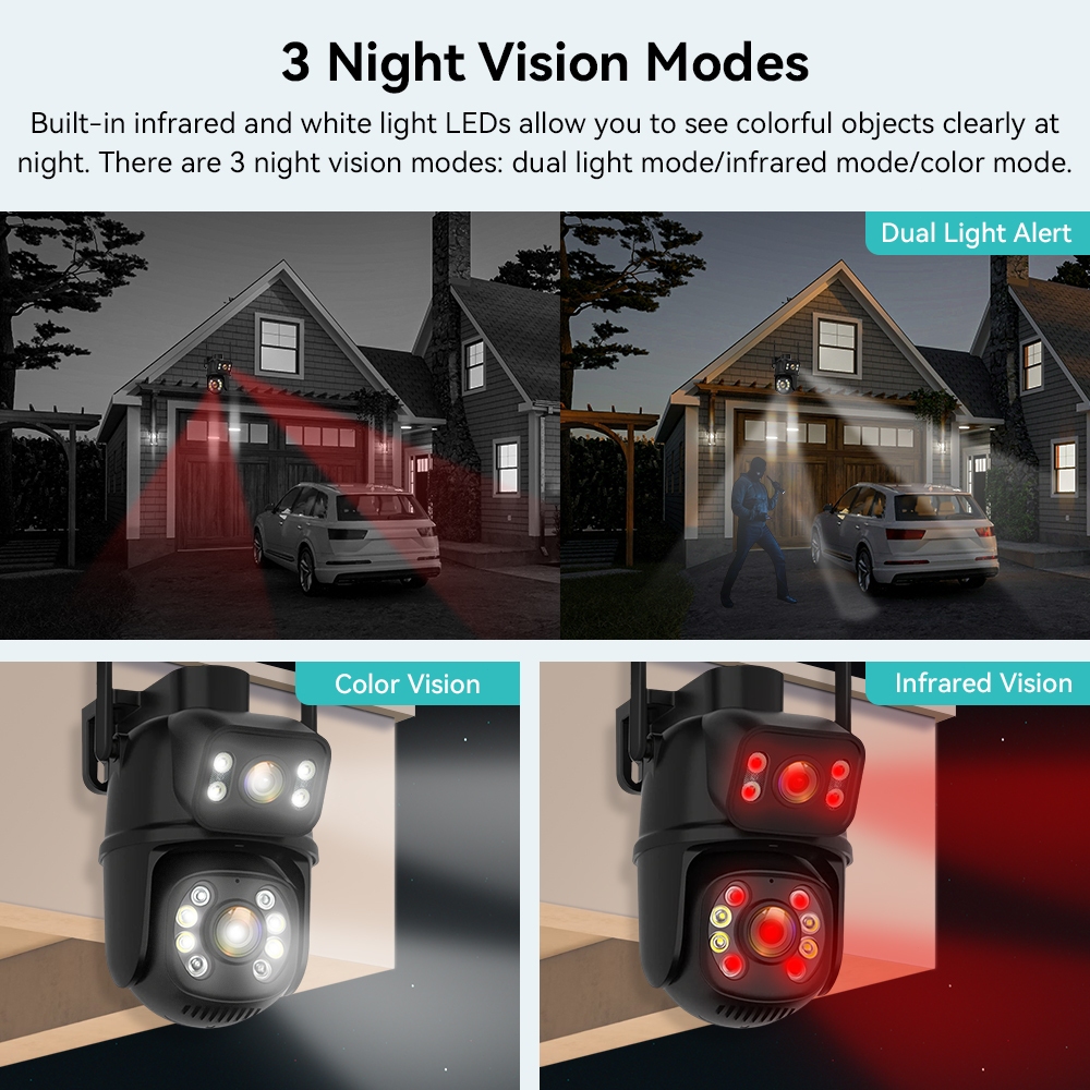 Hamrol 6K 12Mp Kamera Wifi Ptz Three Lens Waterproof 8Mp Dual Lens Auto Tracking Outdoor Cctv Camera