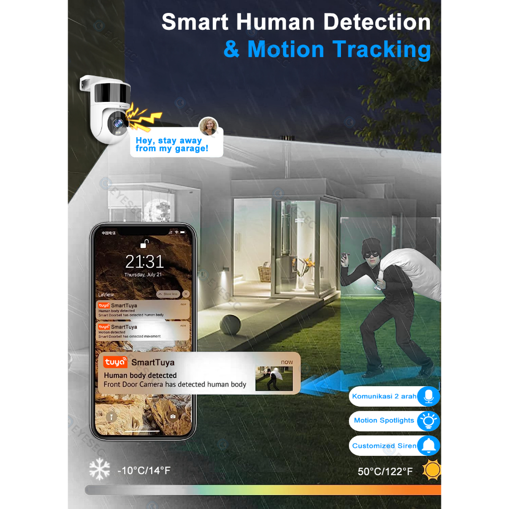 Eyesec Smart Ip Camera Outdoor Cctv 2.5K Fhd 360 Derajat Ptz Ip66 Weatherproof Garansi 1 Tahun