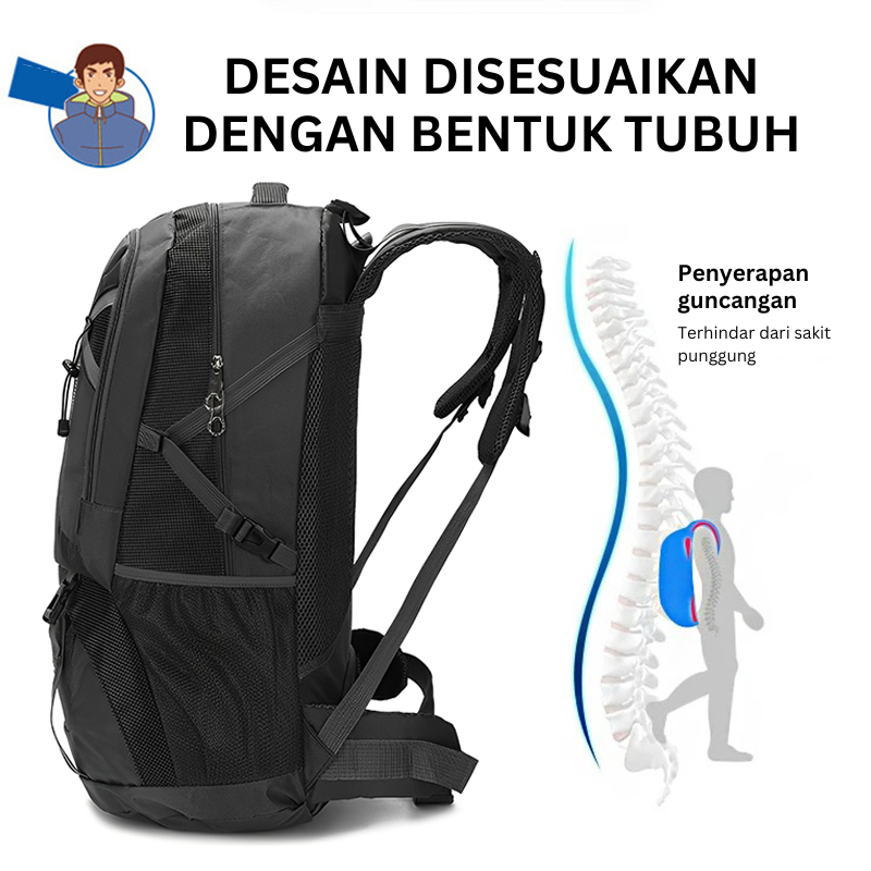 Highland Tas Ransel Pria 60L Gym Fitness Tas Punggung Cowok Jumbo Travelling Waterproof Multifungsi Tr116