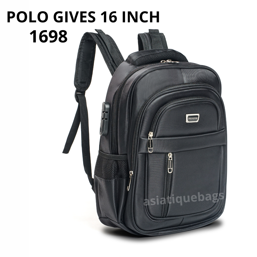 Tas Ransel Kerja Pria 16 Inch Polo Gives - Gratis Raincover, Kabel Usb, Dan Kunci Tas