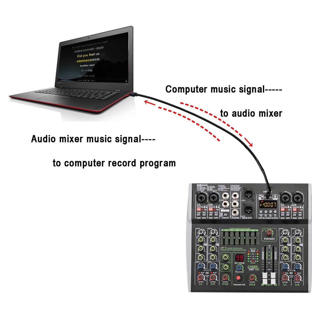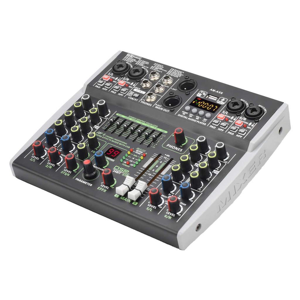 LOMEHO Mixer Audio Professional DSP 99 Effects Bluetooth USB 6 Channel - AM-AX6