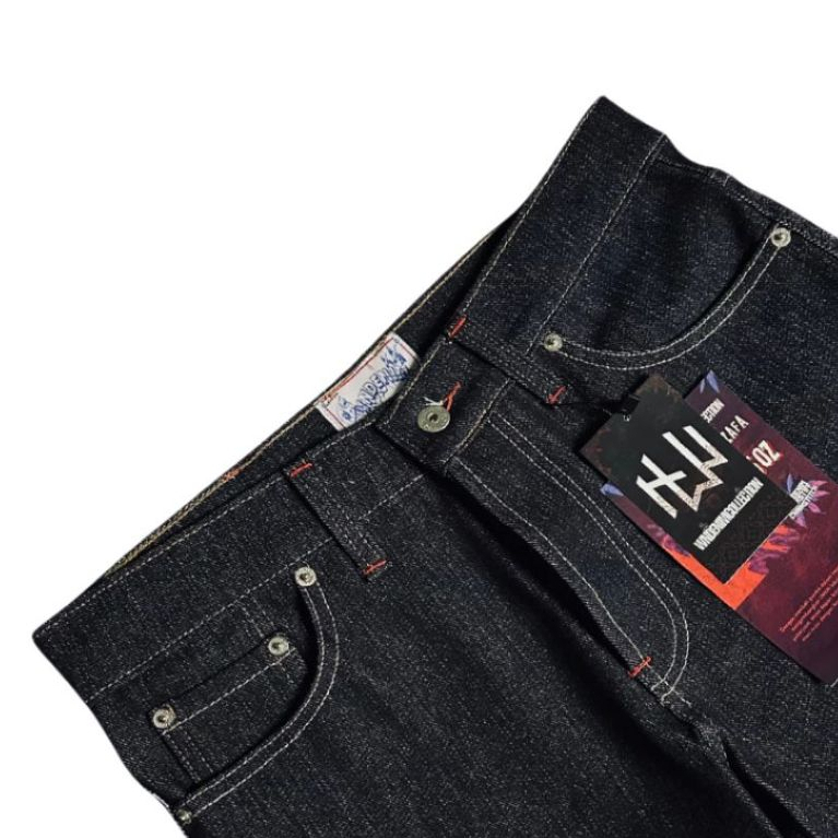 CELANA JEANS PRIA WORNDENIM MUZAFA SERIES RAW DENIM 15 OZ BUTTONFLY SANFORIZED SLIMSTRIGHT NON STRETCH