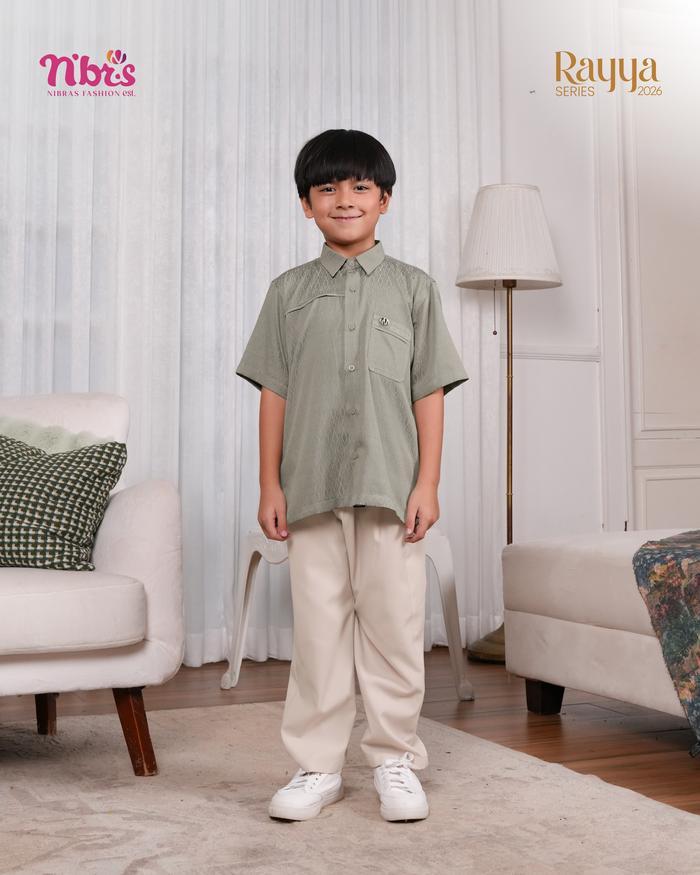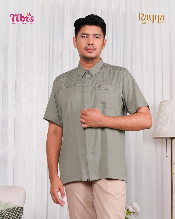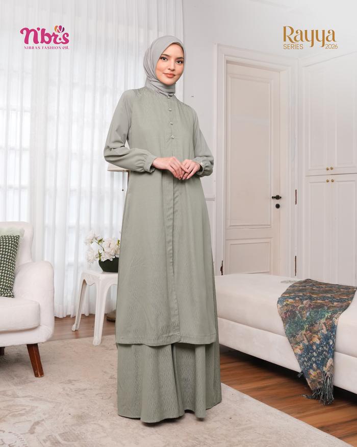 () Nibras 2026 Sarimbit Rayya Couple Keluarga Rayya Series Eldia Light Olive Bahan Dobby Eldia Mix Emerald Peach - Gamis