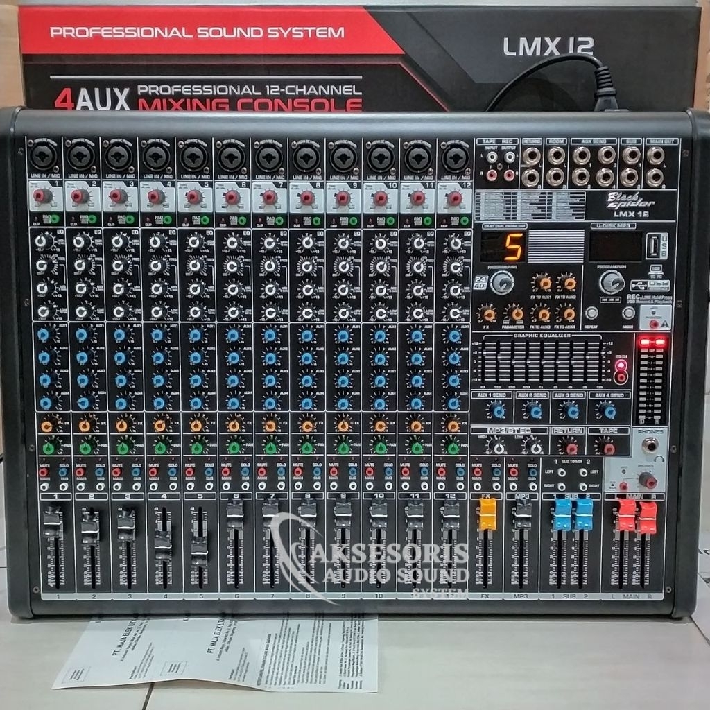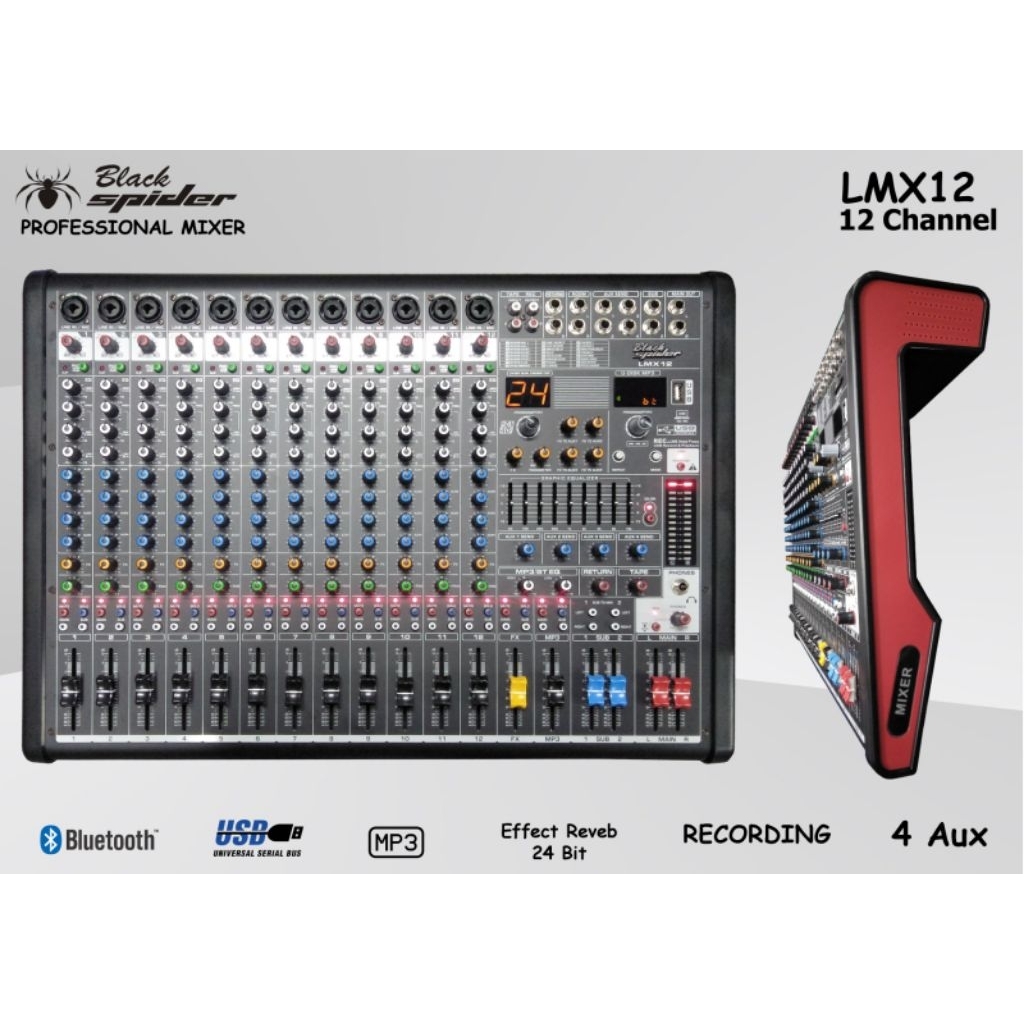 Mixer Black Spider LMX 12 CHANEL Efek Digital Reverb Grub 1 dan 2 Promo