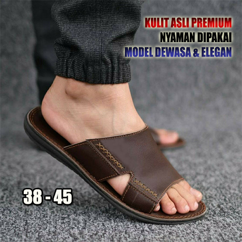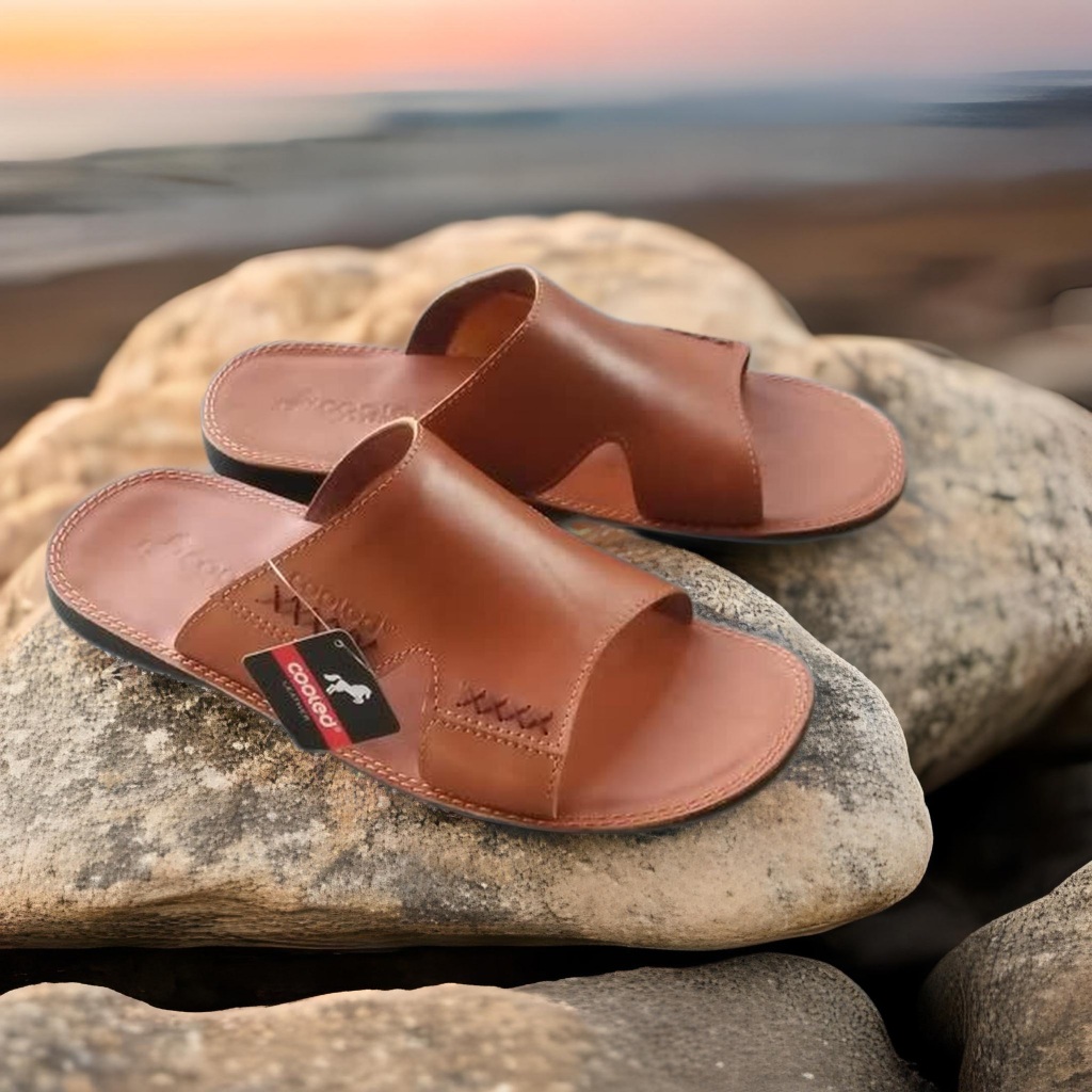 COOLED Sandal Selop Kulit Pria Casual B31 Tan-Hitam-Cokelat