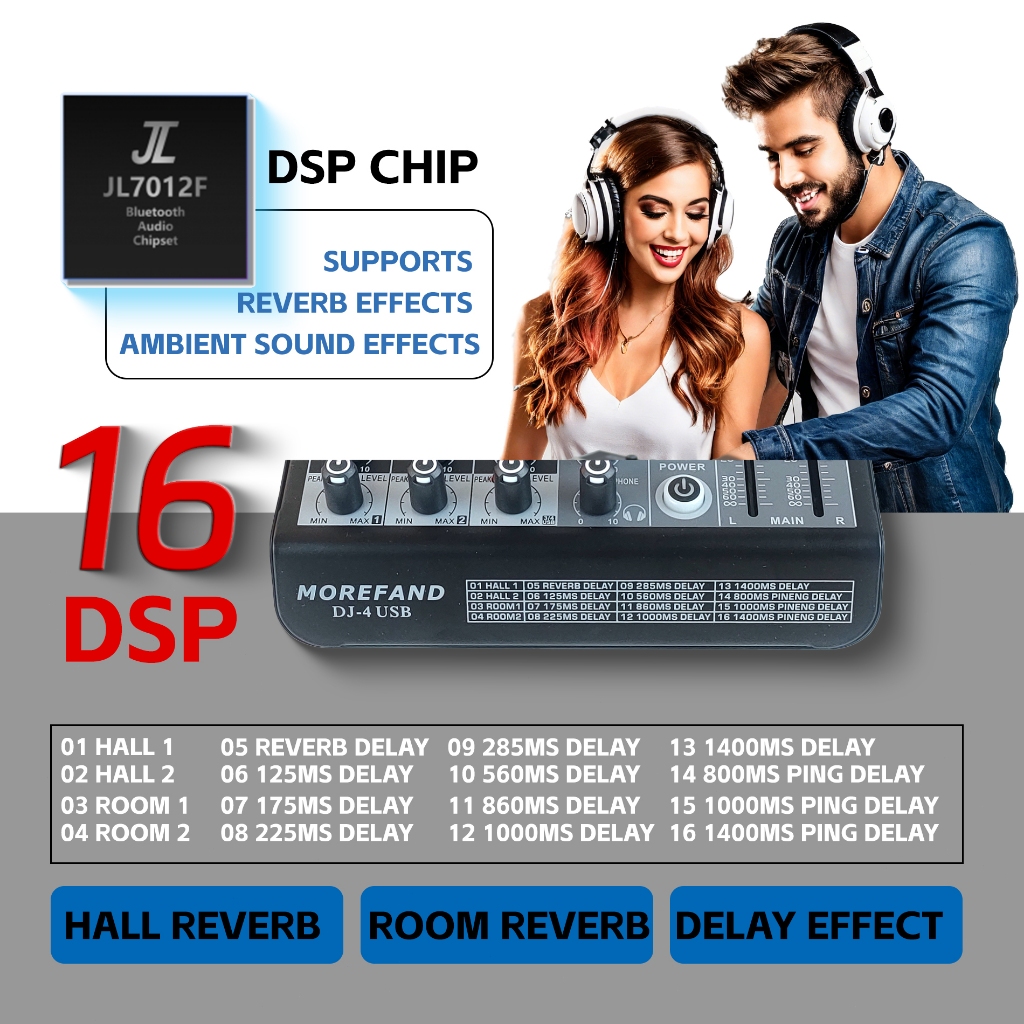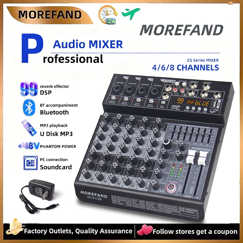 Mixer AUDIO Profesional Panggung/KTV DJ 4/6/8 Channel - 99 Efek SP + Equalizer Terpasang | Bluetooth 5.0 / Pemutaran MP3 / Perekaman | Daya 48V, Output Multi-Interface Power Amplifier Mixer