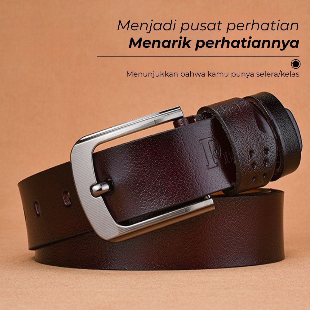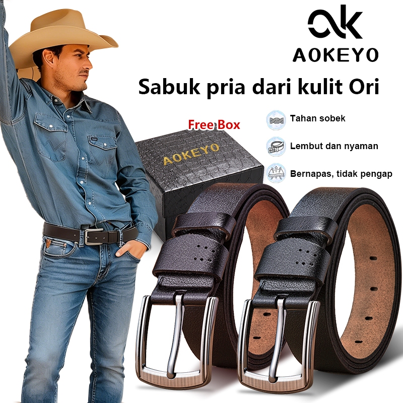 AOKEYO Ikat Pinggang Pria Kulit Sabuk Pria Kulit Sapi Asli Gesper Pria (Free Kotak+ Kartu Garansi)