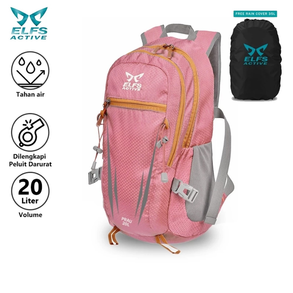 Elfs Active Daypack Ransel 20L Dengan Pluit Water Resistant Bag Tas Ransel 322 Free Raincover