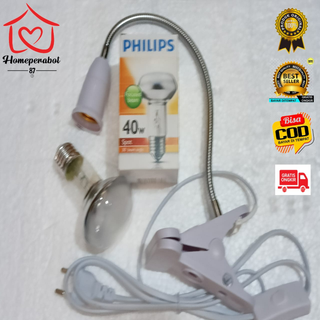 PAKET LAMPU PENGHANGAT PHILIPS SPOT 40 W + FITTING JEPIT KABEL 1,8 M + SAKLAR