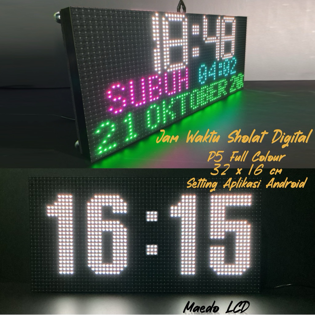 Jam Waktu Sholat Digital Jam Masjid JWS P5 Full Colour 1 Panel