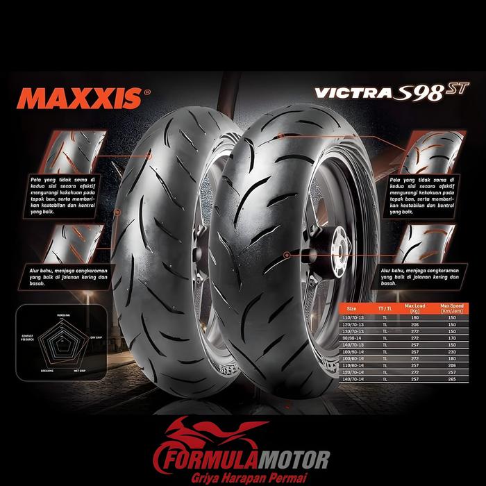 MAXXIS VICTRA ST RING 14-15 TUBELESS (DUAL COMPOUND) BAN TUBLES MOTOR MATIC SEMUA UKURAN - 70/90-14