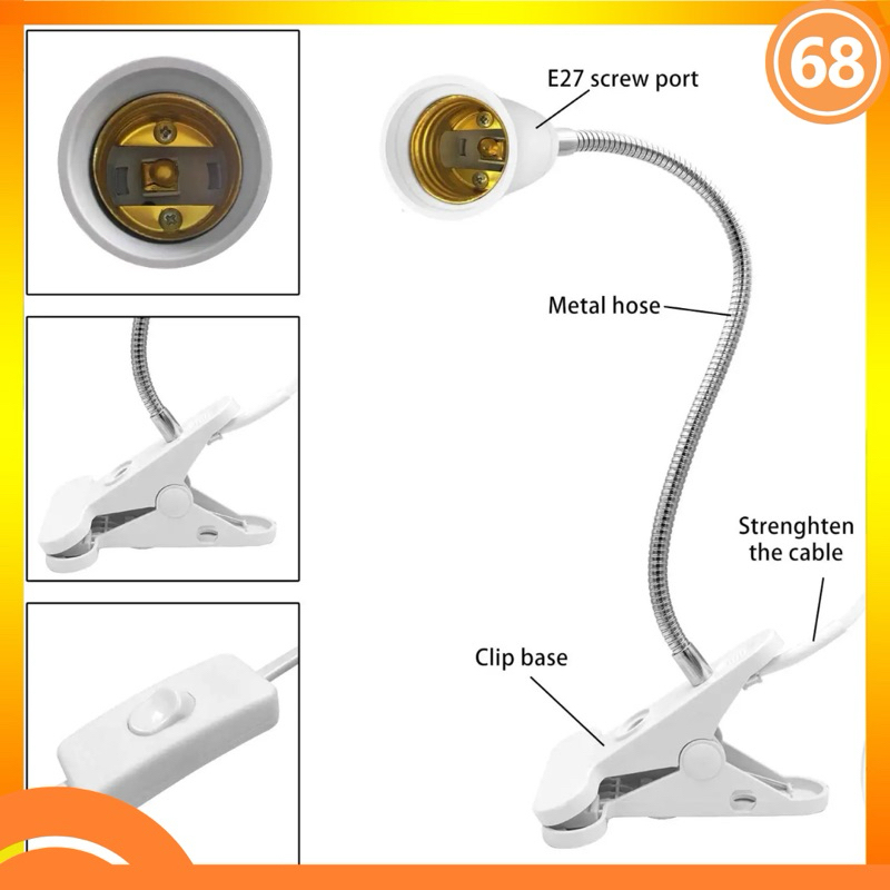 Lampu Meja Jepit Fleksible Minimalis Lampu Belajar Lampu Kerja Fitting E27