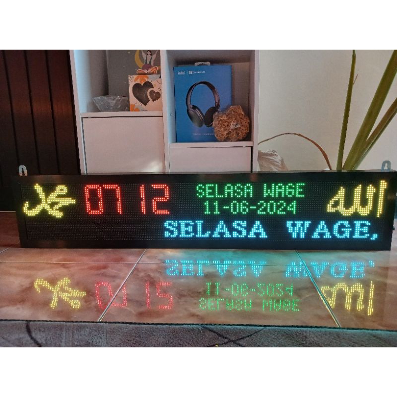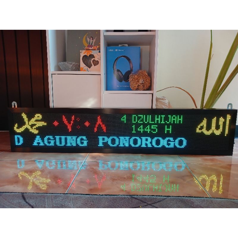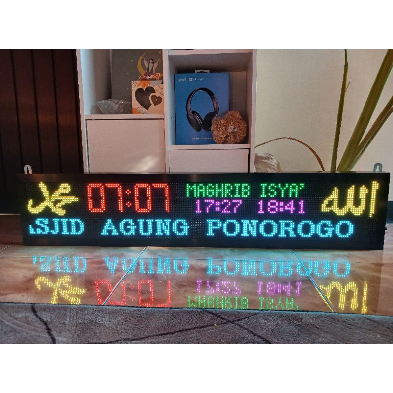 JAM WAKTU SHOLAT MASJID 20X100CM TIPE LAFADZ / JADWAL SHOLAT DIGITAL MUSHOLLA 20X100 CM WIFI RGB FULL COLOR