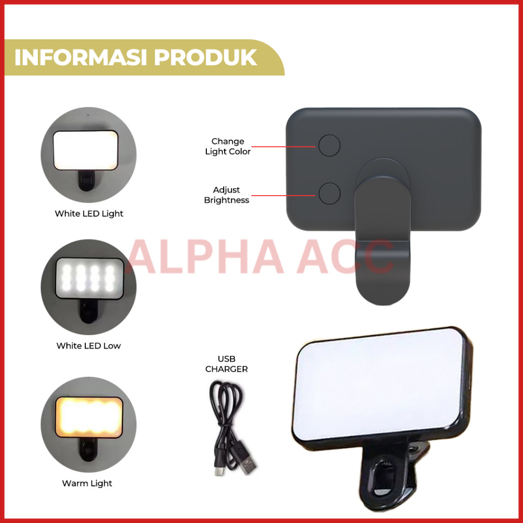 Lampu Jepit Selfie Portable Mini Fill Light Live Streaming Video Call Universal Alpha Acc