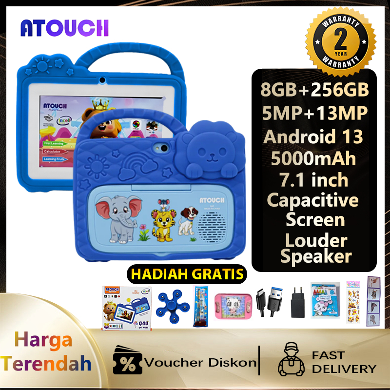 Atouch【Beli 1 Gratis 8】8Gb+256Gb Study Anak Tablet Android13 Tablet Belajar Anak Edukasi