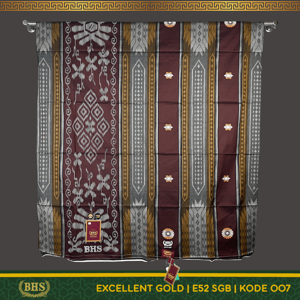 Sarung BHS Excellent Gold Motif E52 SGB Songket Gunungan Bahan Mercerized Cotton Halus dan Lembut [Garansi Original]