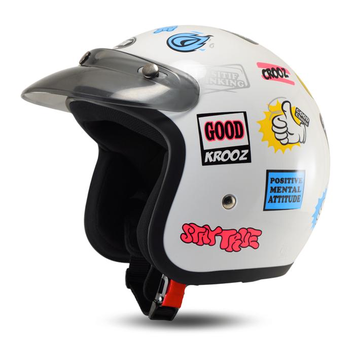 Rsix Helm Retro Bogo Wanita Pria SNI Terbaru Motif Grafity Helmet Kaca Motorcycle - Hitam Gloss Datar Bening