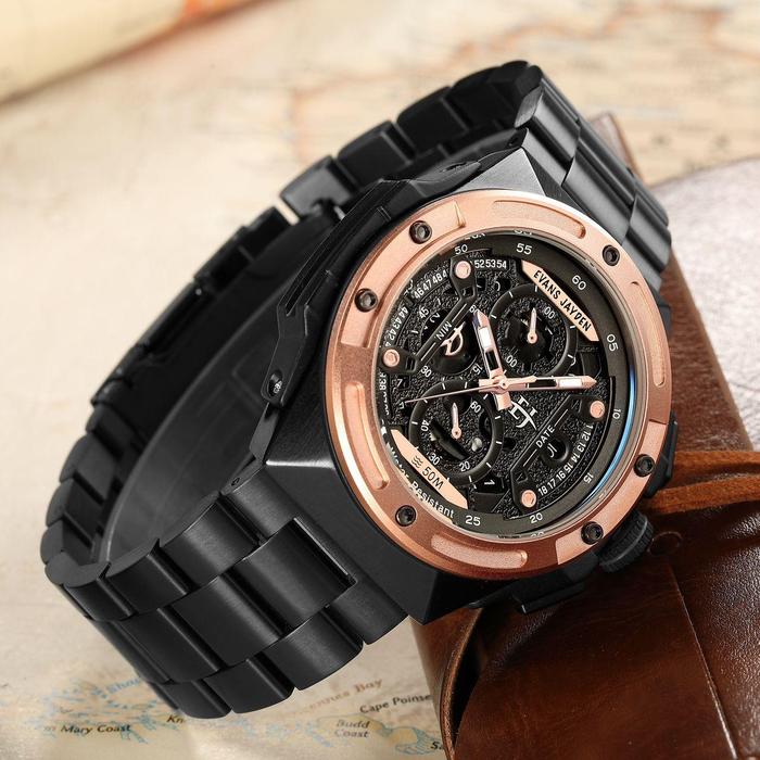 Jam Tangan Pria Evans Jayden 9547 Rantai Stainless Steel Chronograph Kaca Sapphire Water Resistant
