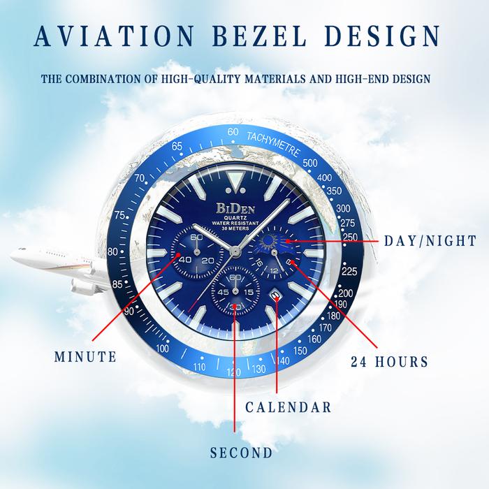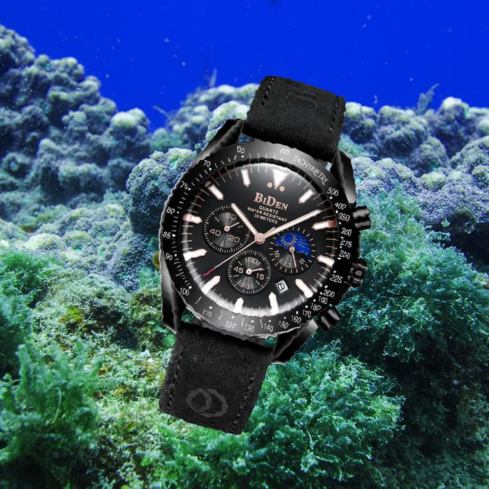 BIDEN Jam Tangan Pria Anti Air Kulit Bisnis Santai Pria Display Kuarsa Otomatis Date Luxury